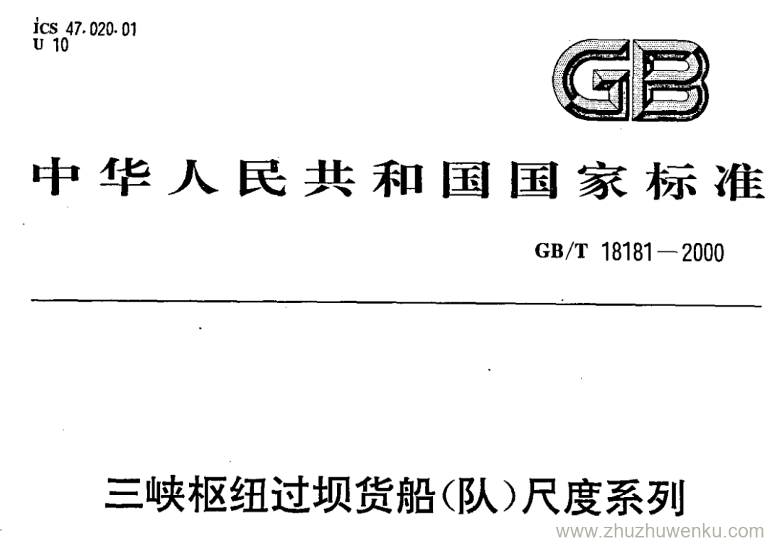 GB/T 18181-2000 pdf下载 三峡枢纽过坝货船(队)尺度系列