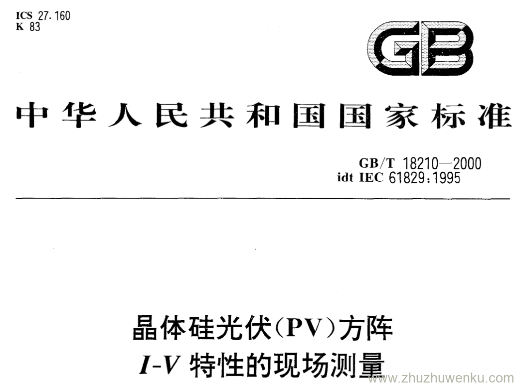 GB/T 18210-2000 pdf下载 晶体硅光伏(PV)方阵 I-V特性的现场测量