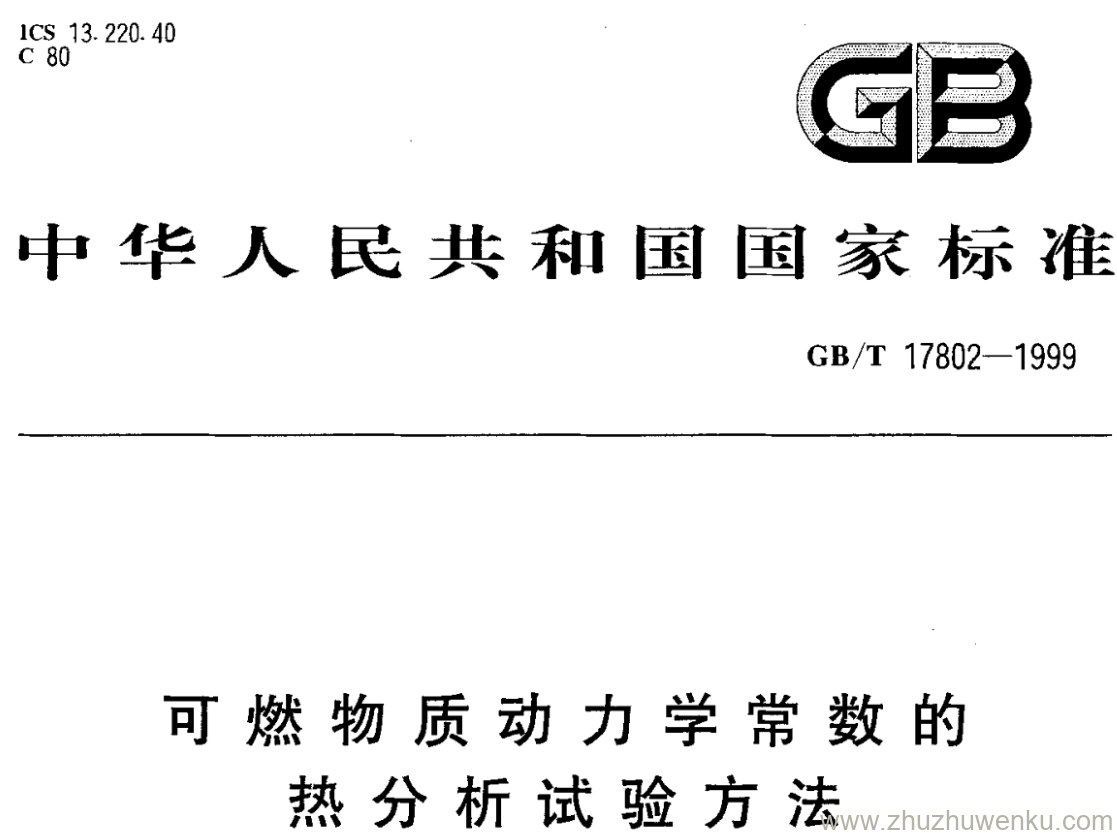 GB/T 17802-1999 pdf下载 可燃物质动力学常数的 热分析试验方法