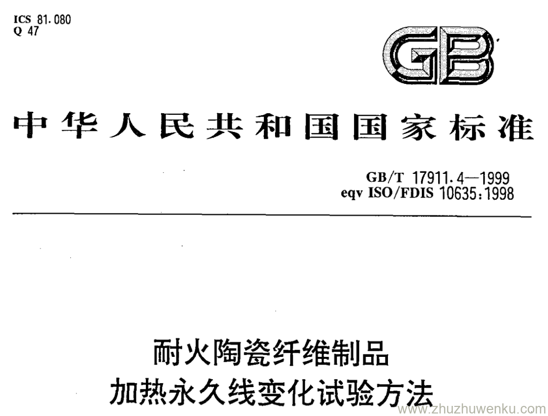 GB/T 17911.4-1999 pdf下载 耐火陶瓷纤维制品 加热永久线变化试验方法