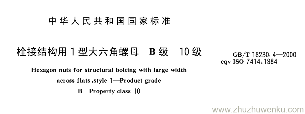 GB/T 18230.4-2000 pdf下载 栓接结构用1型大六角螺母 B级10级