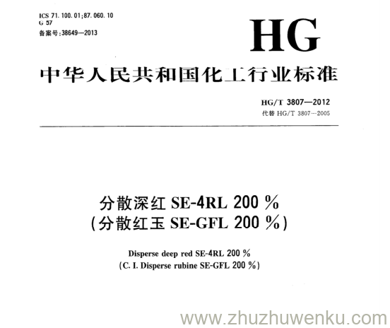 HG/T 3807-2012 pdf下载 分散深红SE-4RL 200 % . (分散红玉SE-GFL 200 %)