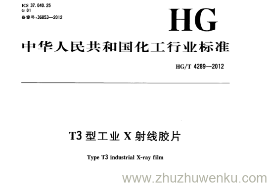 HG/T 4289-2012 pdf下载 T3型工业X射线胶片。 Type T3 industrial X-ray film .