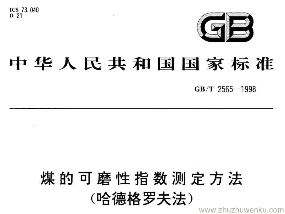 GB/T 2565-1998 pdf下载 煤的可磨性指数测定方法 (哈德格罗夫法)