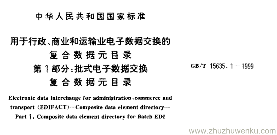 GB/T 15635.1-1999 pdf下载 用于行政、商业和运输业电子数据交换的 复合数据元目录 第1部分:批式电子数据交换 复合数据元目录