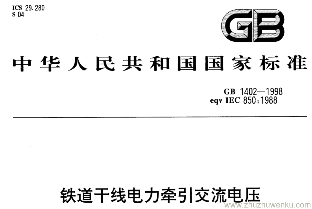 GB/T 1402-1998 pdf下载 铁道干线电力牵引交流电压