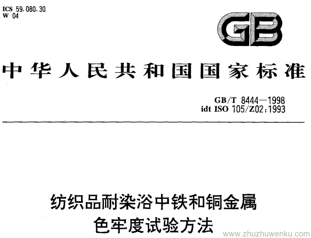 GB/T 8444-1998 pdf下载 纺织品耐染浴中铁和铜金属 色牢度试验方法