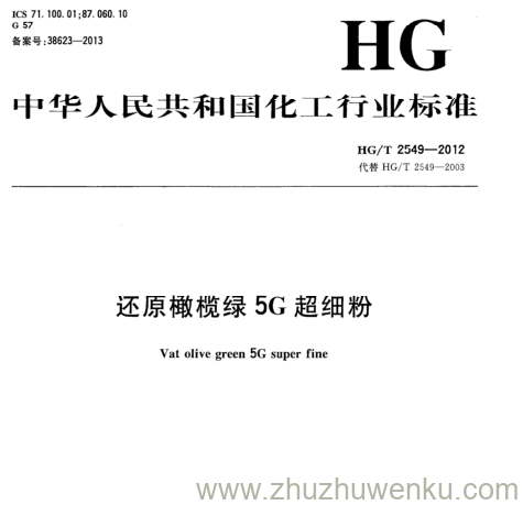 HG/T 2549-2012 pdf下载 还原橄榄绿5G超细粉 。Vat olive green 5G super fine .