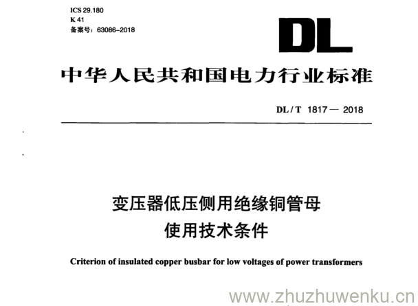 DL/T 1817-2018 pdf下载 变压器低压侧用绝缘铜管母使用技术条件。Criterionofinsulated copper busbar for low voltages of power transformers。