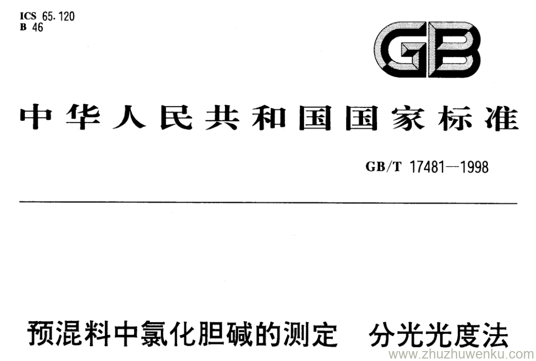 GB/T 17481-1998 pdf下载 预混料中氯化胆碱的测定 分光光度法