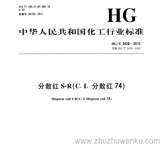 HG/T 3428-2010 pdf下载 分散红S-R(C.I分散红74) 。Disperse red S-R(C. I. Disperse red 74) .