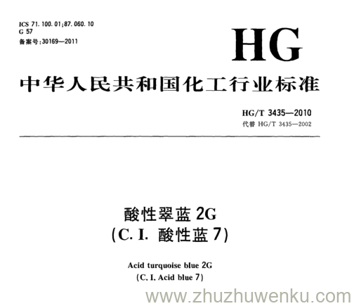 HG/T 3435-2010 pdf下载 酸性翠蓝2G (C.I.酸性蓝7) 。Acid turquoise blue 2G (C. I. Acid blue 7) .