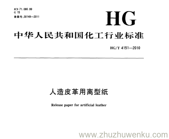 HG/T 4151-2010 pdf下载 人造皮革用离型纸。 Release paper for artificial leather .
