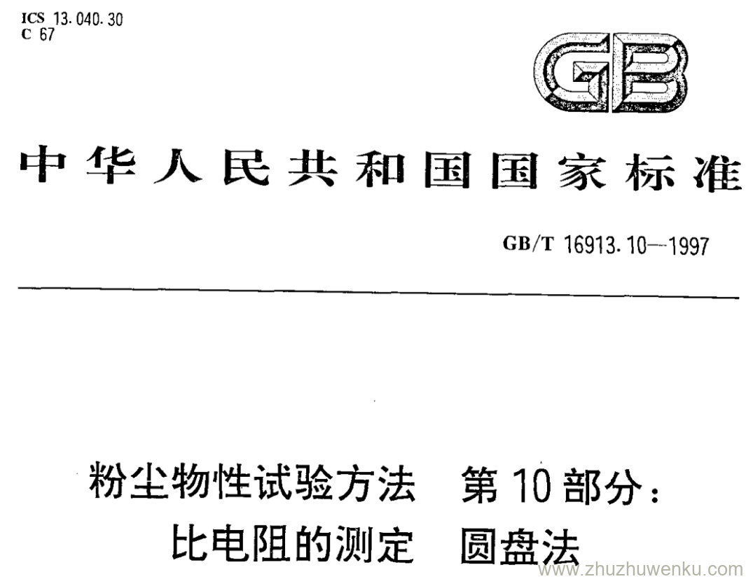 GB/T 16913.10-1997 pdf下载 粉尘物性试验方法 第10部分: 比电阻的测定 圆盘法