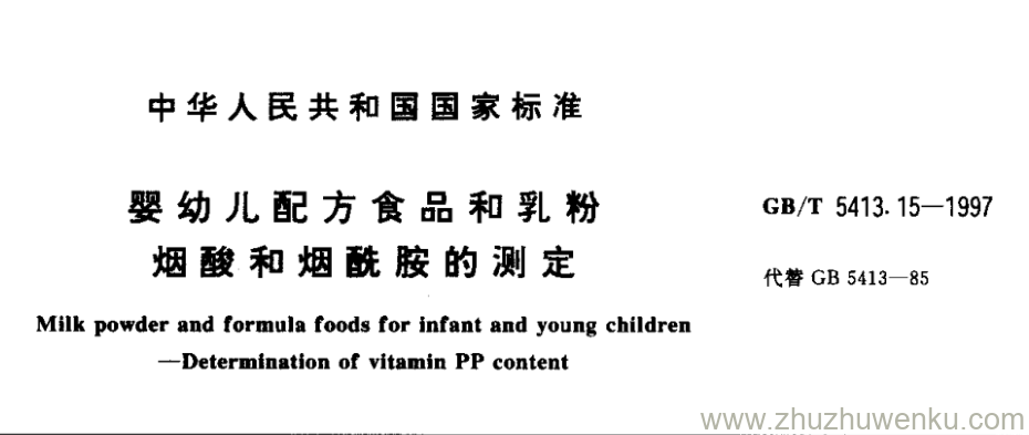 GB/T 5413.15-1997 pdf下载 婴幼儿配方食品和乳粉 烟酸和烟酰胺的测定