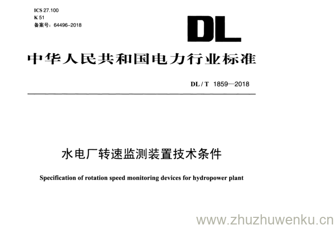 DL/T 1859-2018 pdf下载 水电厂转速监测装置技术条件。Specification ofrotation speed monitoring devices for hydropower plant.