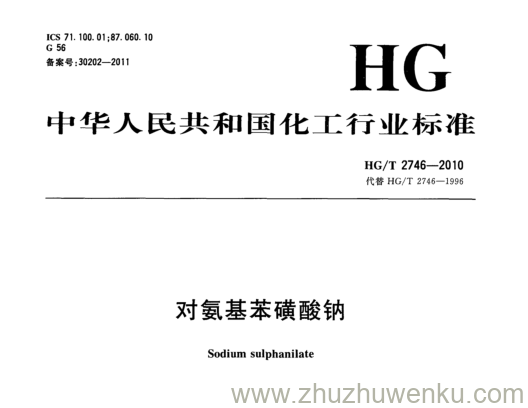 HG/T 2746-2010 pdf下载 对氨基苯磺酸钠。Sodium sulphanilate.
