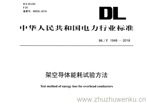 DL/T 1948-2018 pdf下载 架空导体能耗试验方法。Test method of energy loss for overhead conductors.