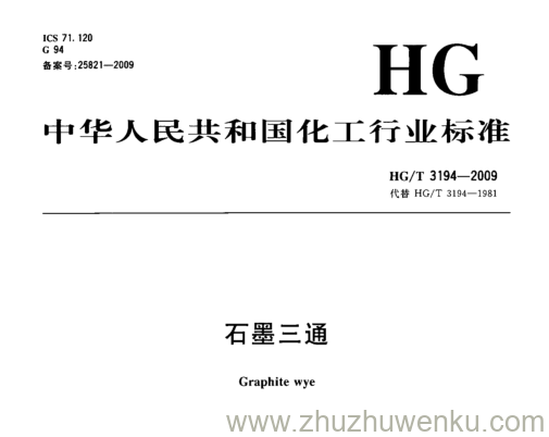 HG/T 3194-2009 pdf下载 石墨三通。Graphite wye.