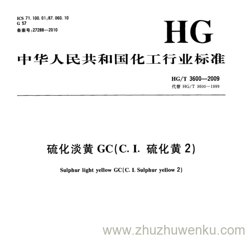HG/T 3600-2009 pdf下载 硫化淡黄GC(C. I.硫化黄2) 。Sulphur light yellow GC(C. 1. Sulphur yellow 2) .