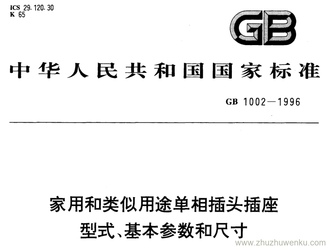 GB/T 1002-1996 pdf下载 家用和类似用途单相插头插座 型式、基本参数和尺寸
