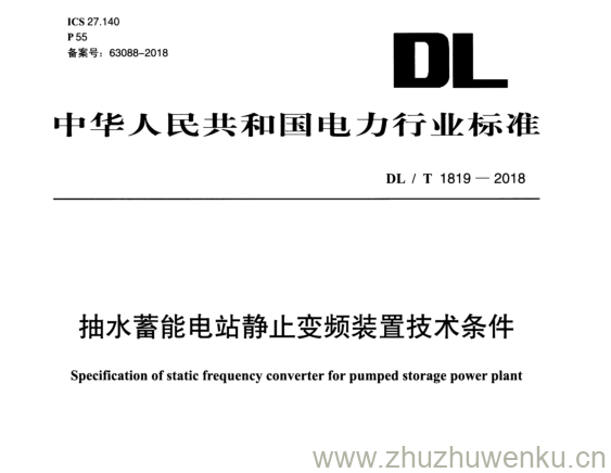 DL/T 1819-2018 pdf下载 抽水蓄能电站静止变频装置技术条件。Specification ofstatic frequency converter for pumped storage power plant.