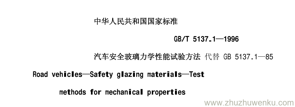 GB/T 5137.1-1996 pdf下载 汽车安全玻璃力学性能试验方法