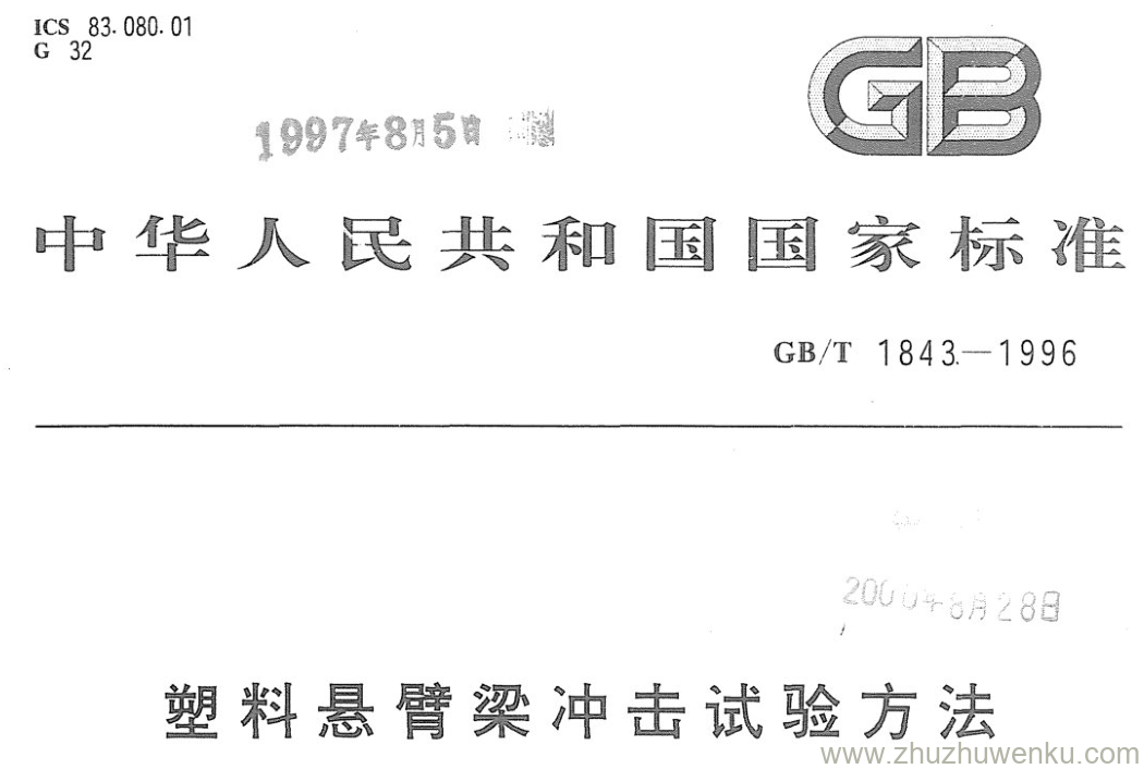 GB/T 1843-1996 pdf下载 塑料悬臂梁冲击试验方法