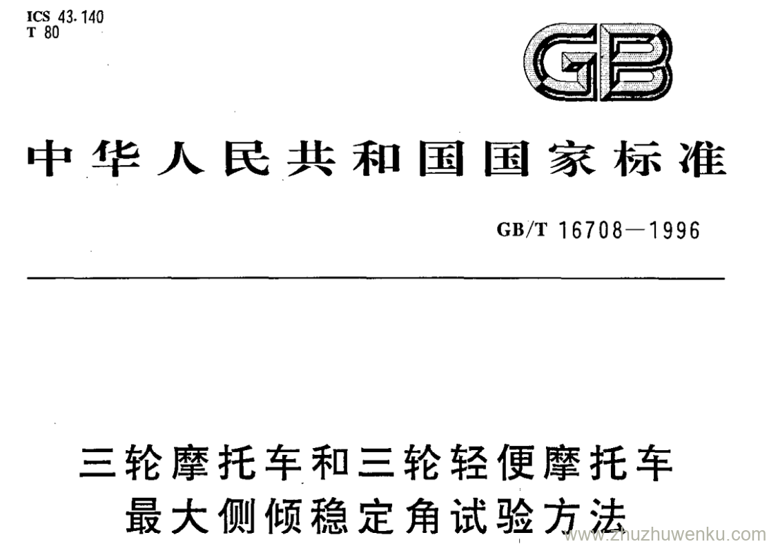 GB/T 16708-1996 pdf下载 三轮摩托车和三轮轻便摩托车 最大侧倾稳定角试验方法