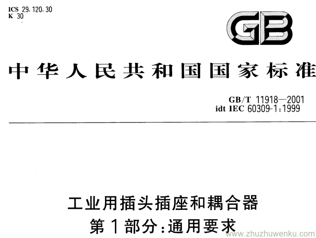 GB/T 11918-2001 pdf下载 工业用插头插座和耦合器 第1部分:通用要求