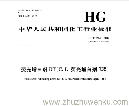 HG/T 2556-2009 pdf下载 荧光增白剂DT(C.I.荧光增白剂135)。 Fluorescent whitening agent DT(C 1. Fluorescent whitening agent 135) .