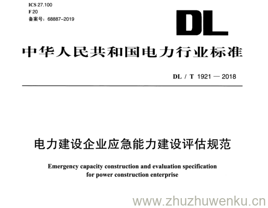 DL/T 1921-2018 pdf下载 电力建设企业应急能力建设评估规范。Emergency capacity construction and evaluation specification for power construction enterprise.