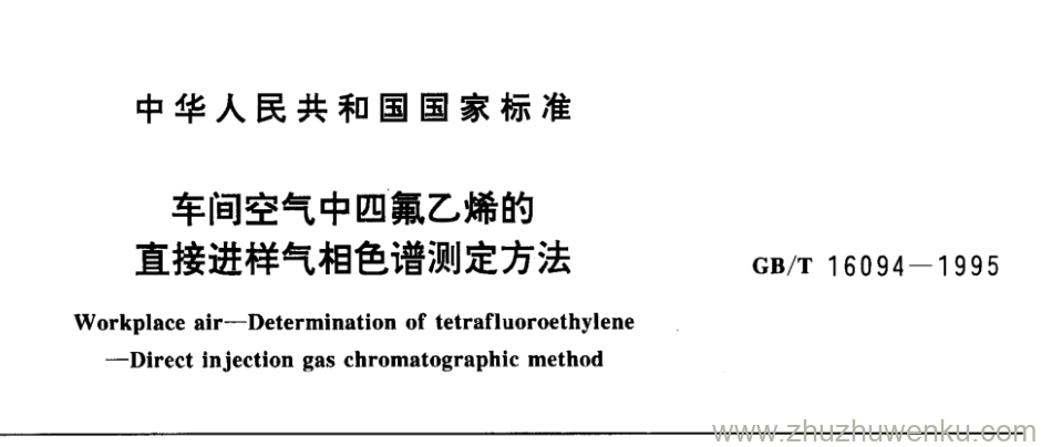 GB/T 16094-1995 pdf下载 车间空气中四氟乙烯的 直接进样气相色谱测定方法