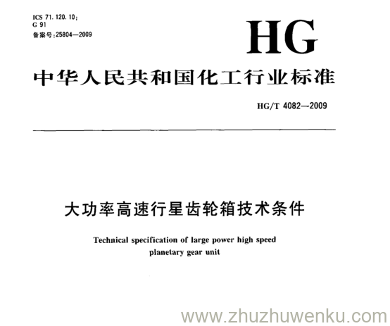 HG/T 4082-2009 pdf下载 大功率高速行星齿轮箱技术条件。 Technical specification of large power high speed planetarygearunit.