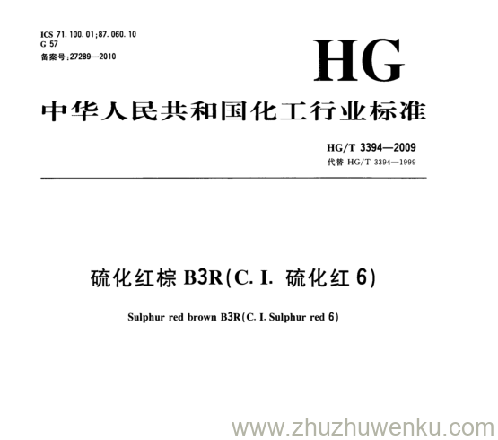 HG/T 3394-2009 pdf下载 硫化红棕B3R(CI硫化红6)。 Sulphur red brown B3R(CISulphur red6).