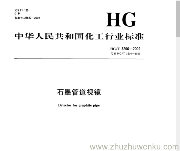 HG/T 3206-2009 pdf下载 石墨管道视镜。 Detector for graphite pipe .