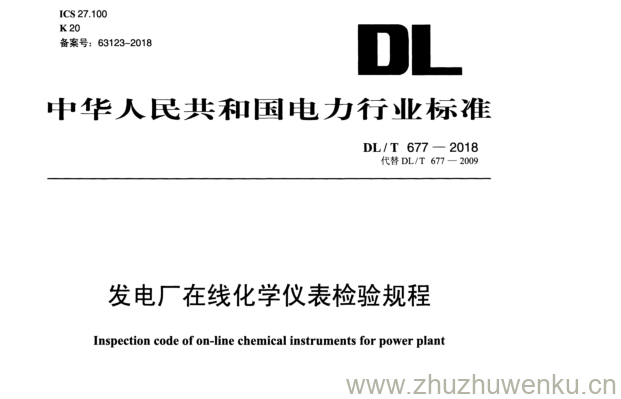 DL/T 677-2018 pdf下载 发电厂在线化学仪表检验规程。Inspection code ofon-line chemical instruments for power plant.