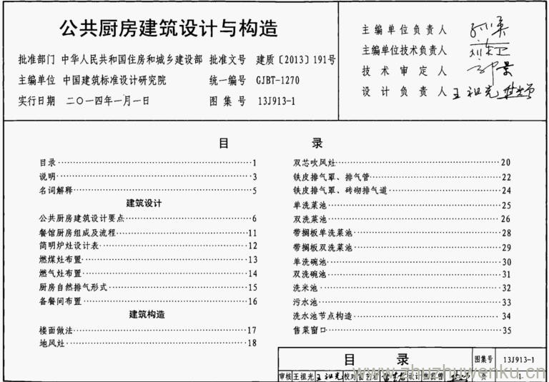 本图集13J913-1适用于新建、改建、扩建的公共厨房工程。建筑设计人员可以直接引用,管理、施工和监理人员可以参考使用。