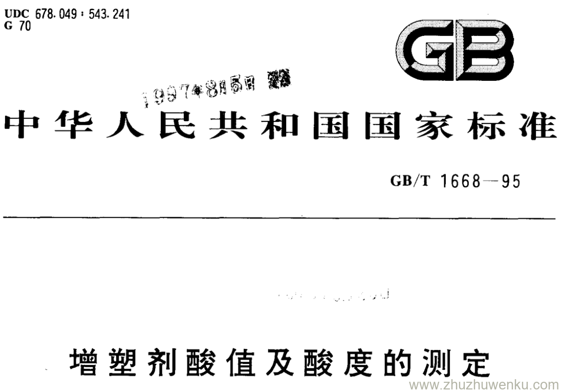 GB/T 1668-1995 pdf下载 增塑剂酸值及酸度的测定