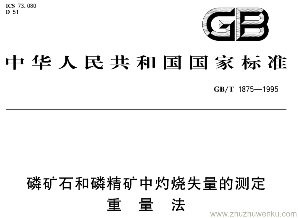 GB/T 1875-1995 pdf下载 磷矿石和磷精矿中灼烧失量的测定 重 量 法