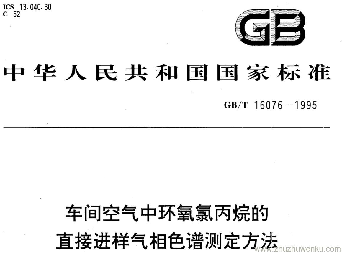 GB/T 16076-1995 pdf下载 车间空气中环氧氯丙烷的 直接进样气相色谱测定方法