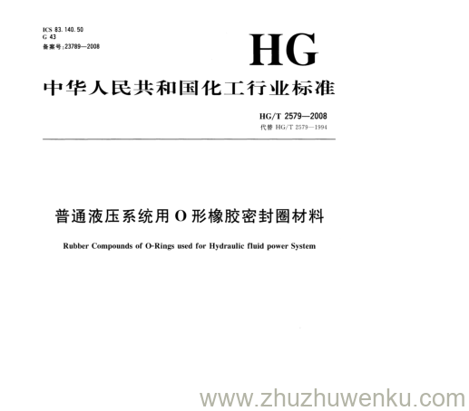 HG/T 2579-2008 pdf下载 普通液压系统用0形橡胶密封圈材料。 Rubber Compounds of O-Rings used for Hydraule fluld power System .