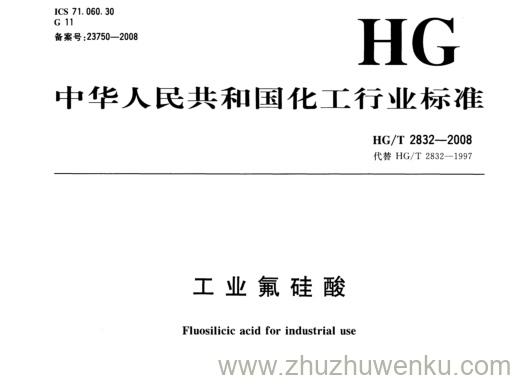 HG/T 2832-2008 pdf下载 工业氟硅酸。 Fluosilicic acid for industrial use .