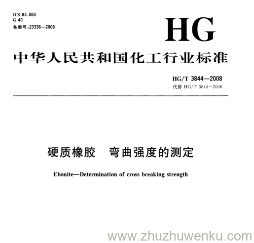 HG/T 3844-2008 pdf下载 硬质橡胶 弯曲强度的测定。 Ebonite- -Determination of cross breaking strength .