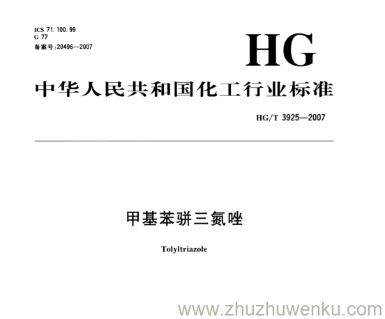 HG/T 3925-2007 pdf下载 甲基苯骈三氮唑。 Tolyltriazole .