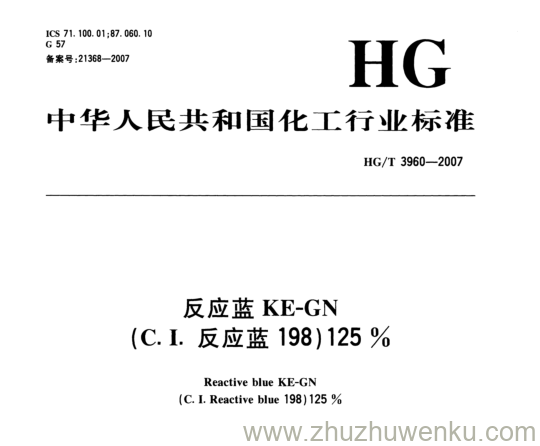 HG/T 3960-2007 pdf下载 反应蓝KE-GN (C.I. 反应蓝198)125 %