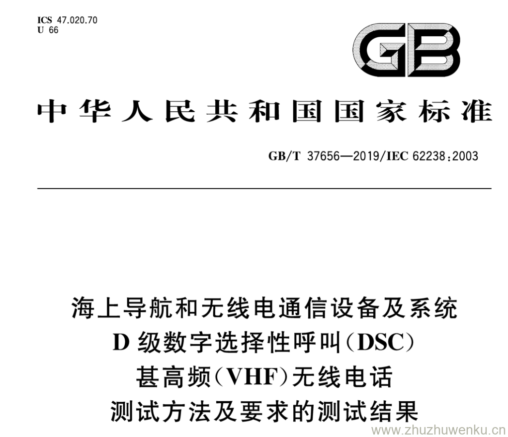 GB/T 37656-2019 pdf下载 海上导航和无线电通信设备及系统 D 级数字选择性呼叫(DSC ) 甚高频( VHF )无线电话 测试方法及要求的测试结果
