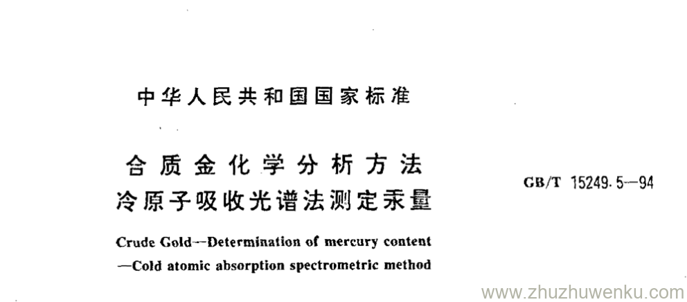 GB/T 15249.5-1994 pdf下载 合质金化学分析方法 冷原子吸收光谱法测定汞量