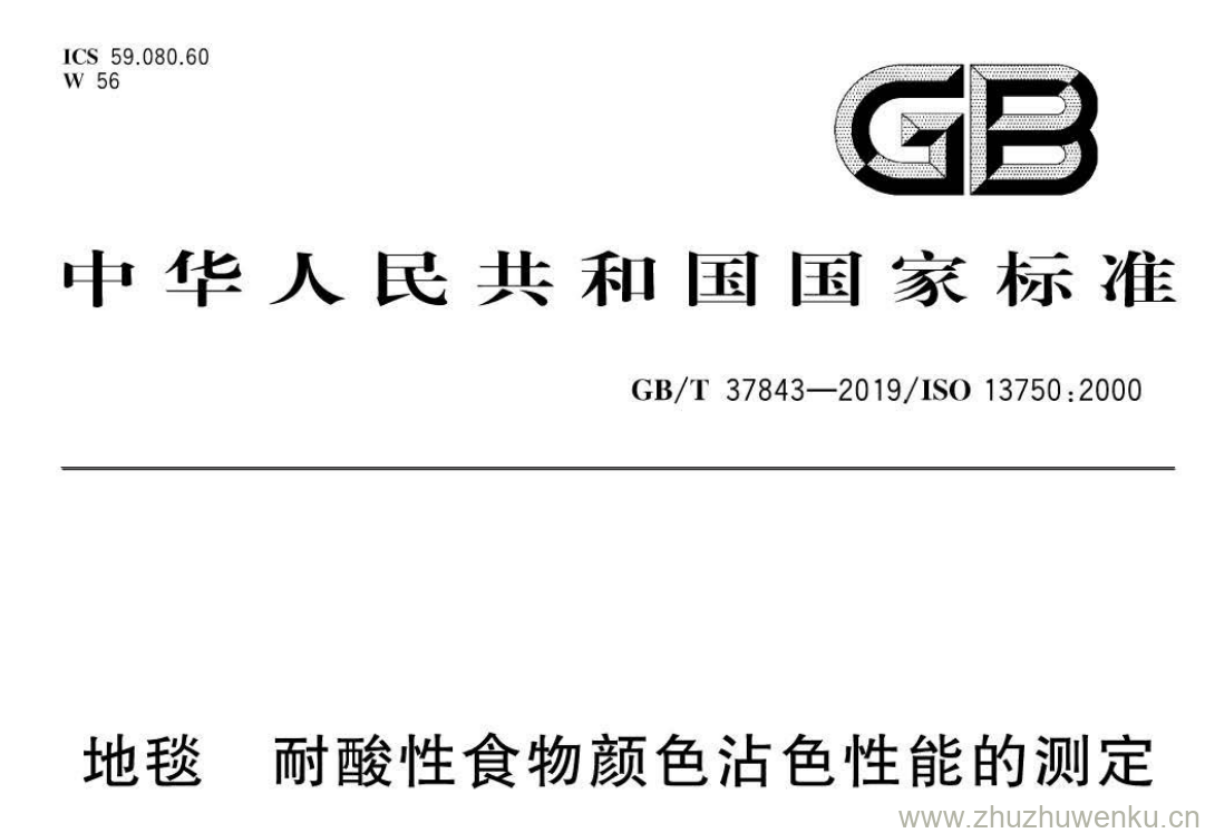 GB/T 37843-2019 pdf下载 地毯 耐酸性食物颜色沾色性能的测定
