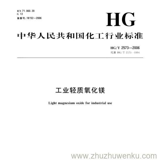 HG/T 2573-2006 pdf下载 工业轻质氧化镁。 Light magnesium oxide for industrial use .
